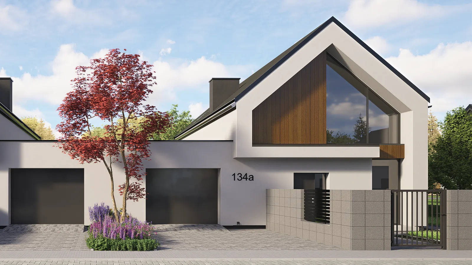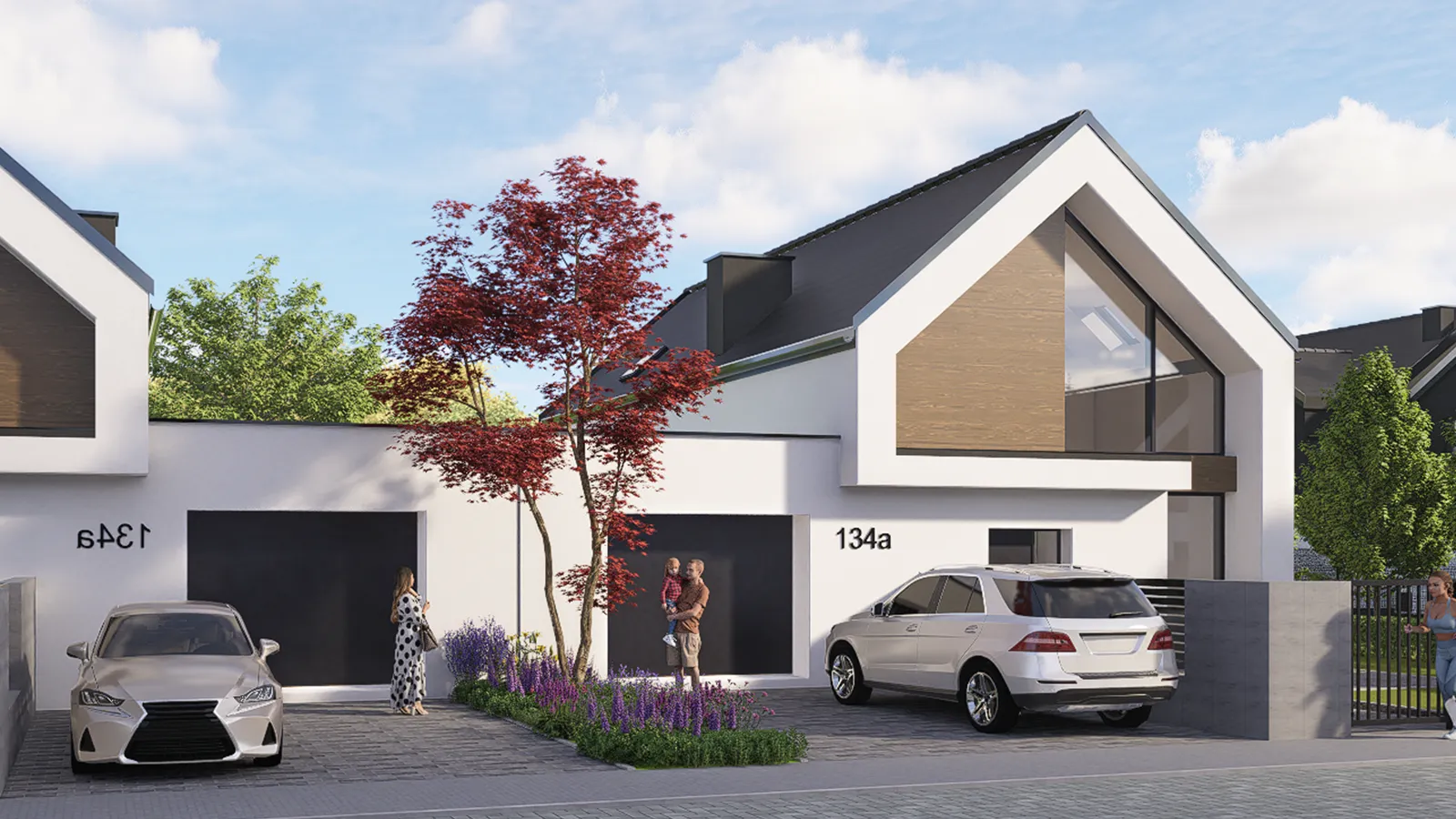Poniższe wizualizacje przedstawiają projekt domu w wybranie lokalizacji, który możemy dostosować do Twoich wymagań. Dokładne informacje dotyczące standardu wykończenia każdego domu znajdują się w szczegółowym opisie projektu.