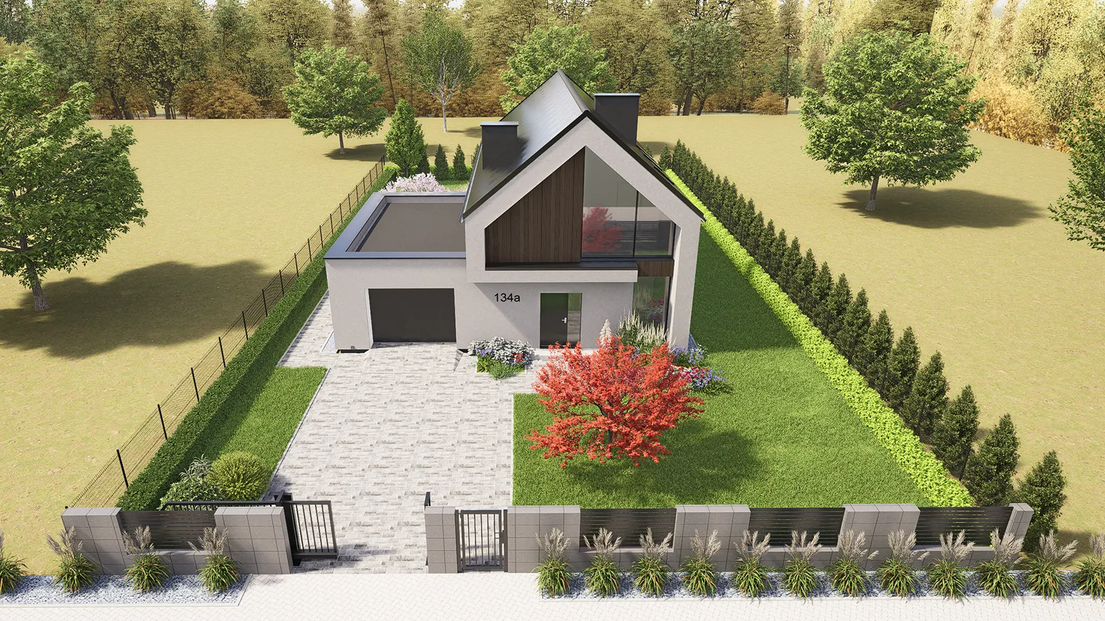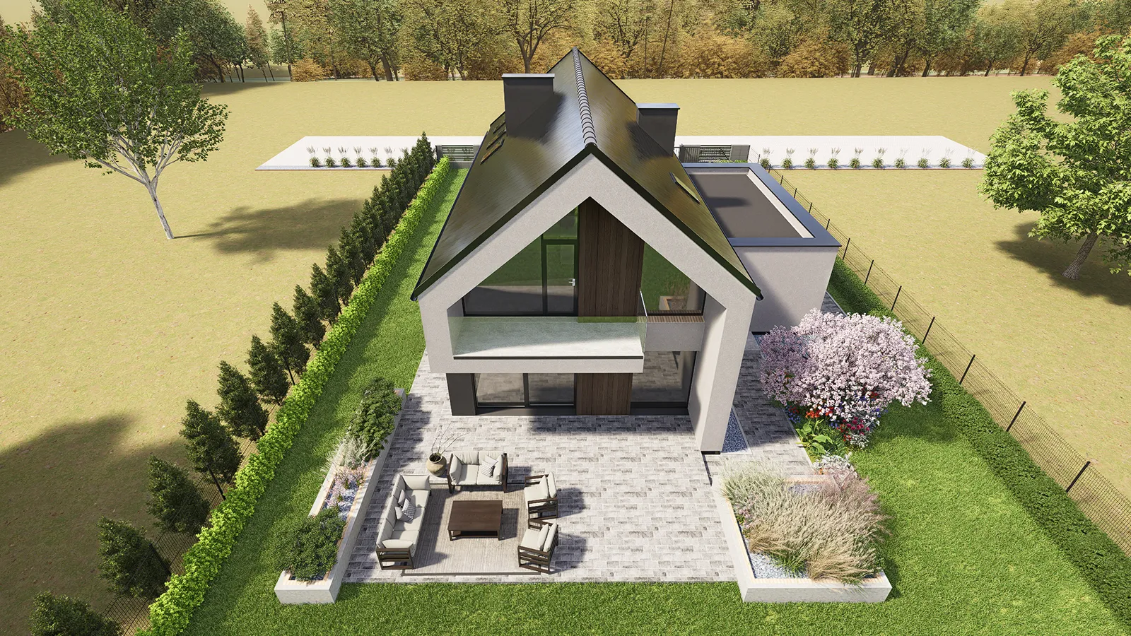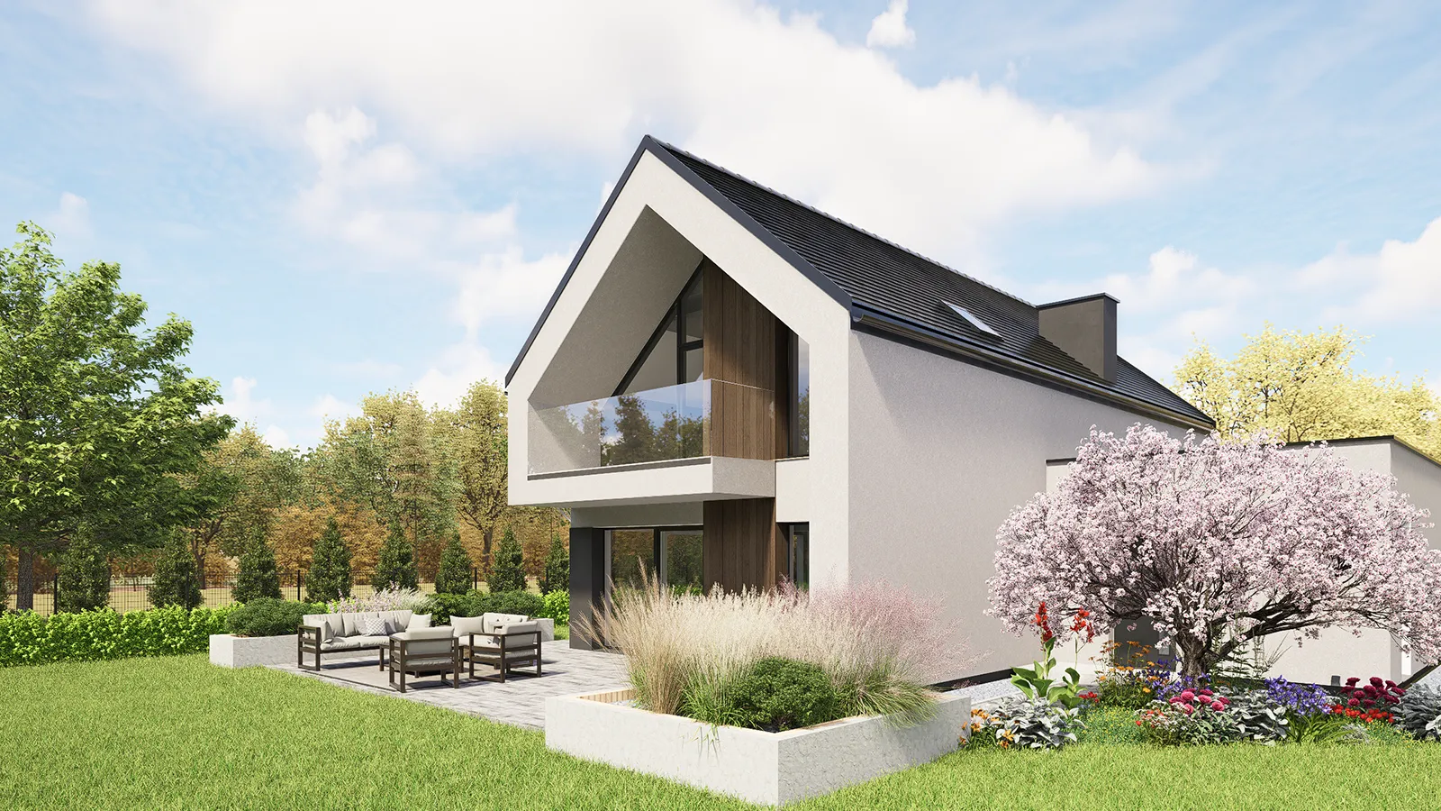 Poniższe wizualizacje przedstawiają projekt domu w wybranie lokalizacji, który możemy dostosować do Twoich wymagań. Dokładne informacje dotyczące standardu wykończenia każdego domu znajdują się w szczegółowym opisie projektu.
